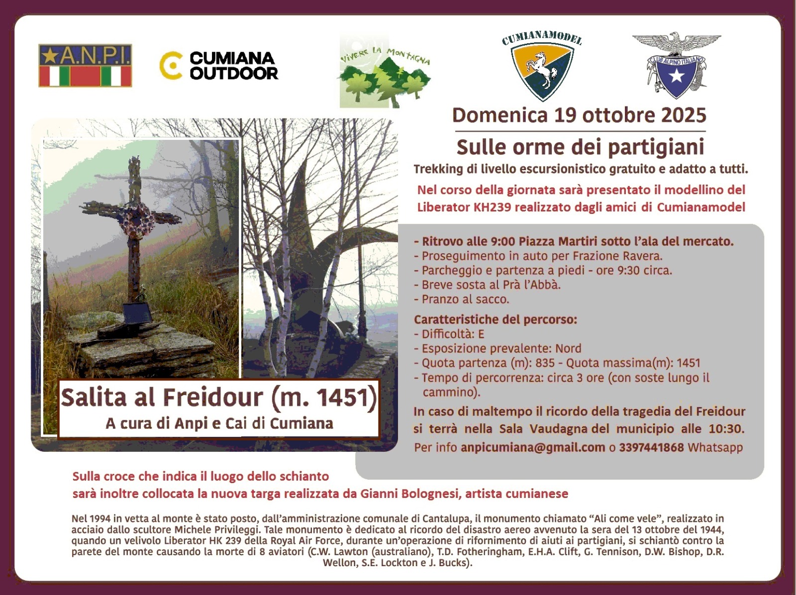 ANPI Cumiana, salita al Freidour, commemorazione Liberator precipitato nel ’44